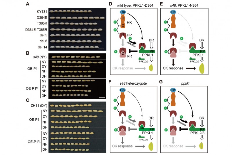 科學(xué)研究員工根據(jù)規(guī)模性誘變,挑選到一個(gè)粒大顯性突變體并復(fù)制了突變體遺傳基因 PPKL1 。與RR蛋白質(zhì)相近,PPKL1可與AHP2蛋白質(zhì)立即互作,并根據(jù)效仿RR蛋白質(zhì)功能分區(qū)與其說市場(chǎng)競(jìng)爭(zhēng)AHP2的磷酸基團(tuán),造成 硫酸銨無線中繼高效率急劇減少。當(dāng)此作用區(qū)位優(yōu)勢(shì)點(diǎn)突變后則失去了對(duì)數(shù)據(jù)信號(hào)傳輸?shù)奈:?,相?duì)應(yīng)地子粒明顯擴(kuò)大??茖W(xué)研究工作人員以高品質(zhì)小麥品種空育131為原材料,對(duì)于該功能分區(qū)開展基因編輯技術(shù),得到好幾個(gè)可不一樣水平擴(kuò)大子粒的基因型,一部分可明顯高產(chǎn)。該探討中科學(xué)研究工作人員共研制了千粒重從20g到38g逐漸遍布的稻谷原材料,進(jìn)而構(gòu)建了一套稻谷子粒尺寸精確設(shè)計(jì)方案系統(tǒng)軟件。PPKL大家族蛋白質(zhì)對(duì)細(xì)胞分裂素?cái)?shù)據(jù)信號(hào)的抑制效果可能是一個(gè)歷史悠久的作用,其作用結(jié)構(gòu)域掩藏在谷甾醇類生長(zhǎng)激素油菜子素內(nèi)酯數(shù)據(jù)信號(hào)成分中,挖掘并充分利用其對(duì)農(nóng)作物開展分子結(jié)構(gòu)設(shè)計(jì)方案改進(jìn)具備重特大運(yùn)用使用價(jià)值。