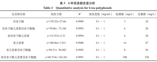 6種茶氨酸定性分析方式 和檢出限及其定量限見表3。