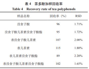 種茶氨酸加樣利用率和精度數(shù)據(jù)信息見表4。