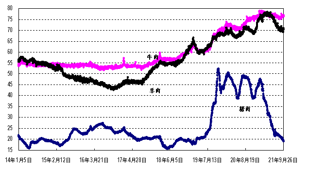 國際性棉絮指數(shù)值(SM級)每磅105.96便士(一噸2336美元),同比跌2%,同期相比高41%;泰國的100%B級和5%堆密度稻米泰國曼谷離岸賬戶周平均價一噸各自為420美元和395美元,同比均跌2%,同期相比均低23%;英國芝加哥商品交易所大豆油和黃豆近期期權(quán)合約收市周平均價一噸各自為1242美元和496美元,同比均跌1%,同期相比各自高六2%和25%。