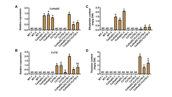 圖3 共表達(dá)CsAlaDC和CsTSI的香煙葉子中生成了很多茶多酚