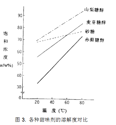赤蘚糖醇溶解度低,20℃時(shí)僅達(dá)37%(w/w)(圖3)。