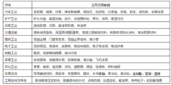 表1? 聚氨酯彈性體應(yīng)用領(lǐng)域例