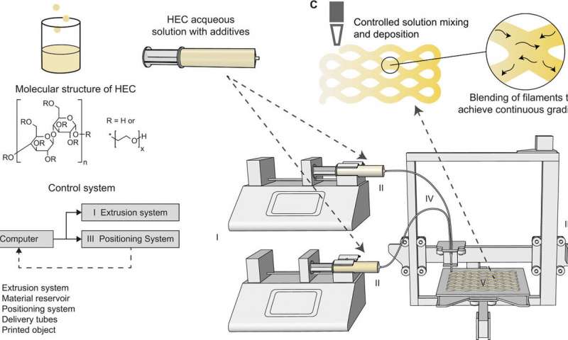結(jié)合材料工程和數(shù)字處理作為FGM的制造方法,用于構(gòu)造性和大眾運輸過程以創(chuàng)建連續(xù)的梯度。他們通過纖維素衍生物的工程解決方案來實現(xiàn)這一點,以提供可控的擠出性能。