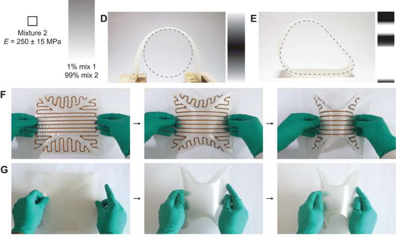 具有較低粘度的材料的流動性提供了物體的連續(xù)性,而更具粘性的混合物則離散地改變了剛度。