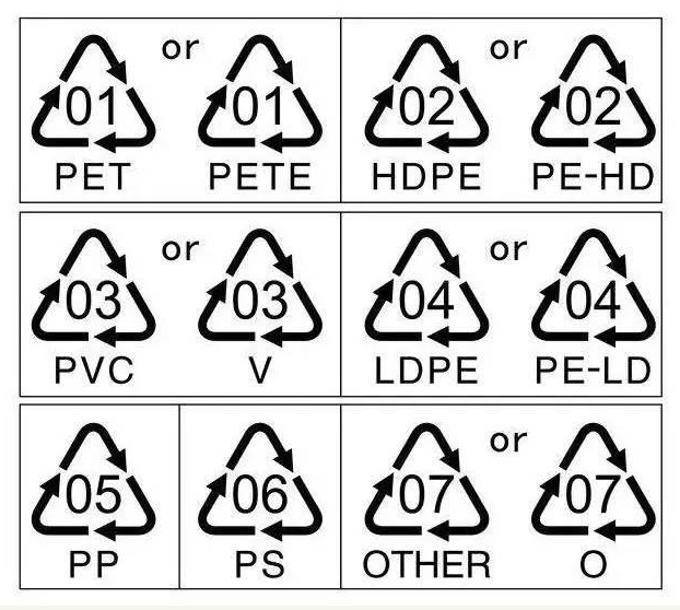美國塑料工業(yè)協(xié)會(美國塑料工業(yè)協(xié)會)制定了分類標志的塑料(樹脂識別碼)在1988年的一些塑料制品中一般會標明在底部,它定義了使用范圍,標有船的數(shù)量均為合格產(chǎn)品,但如果使用不當就會對人體造成危害。