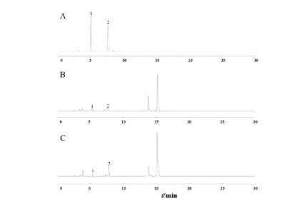 RIGOLL-3000型高效液相色譜儀(蘇州普源精電有限公司,包括L-3500檢測器、L-3245四元泵、L-3320自動進樣器和L-3400柱溫箱);EX225D十萬分之一電子天平(奧豪斯儀器(上海)有限公司)。