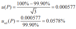 ④根據(jù)100~1000uL量程的移液器檢定報(bào)告,移取800uL液體的誤差為士0.5%,則相對(duì)不確定度為: