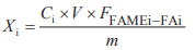 Xi—試樣中各脂肪酸的含量,單位為毫克每百克(mg/100g);Ci—試樣測定液中各脂肪酸甲酯的含量(μg/mL);