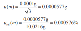 樣品采用萬分之一天平進行稱量,稱樣量為10.0216g(精確至0.0001g),根據(jù)該天平鑒定證書可知其最大允差為±0.0001g,按照均勻分布,采用B類方法評定,則樣品稱量過程中天平引入的標準不確定度和相對不確定度為: