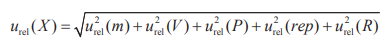 結合數(shù)學模型和《化學分析中不確定度的評估指南》,氣相色譜法測定鮮馬奶中棕櫚酸含量的相對標準不確定度的計算公式為: