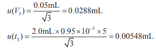 ③由于采用的分度吸量管規(guī)格與②中相同,且吸取的2.0mL上清液主要為正己烷,故計算移液管的不確定度和由溫度引起的體積標準不確定度參照②中的算法進行: