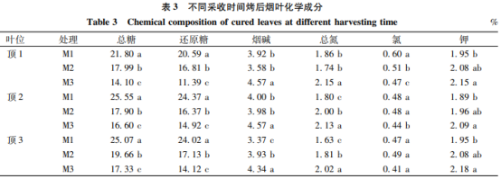 2.6 不同采收時(shí)間對(duì)煙葉化學(xué)成分的影響