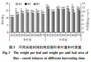 2.5 不同采收時(shí)間對(duì)煙葉單葉重和葉質(zhì)重的影響