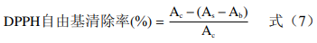 式中:Ac為1.5mL蒸餾水與1.5mLDPPH混合液的吸光度;As為1.5mL樣液與1.5mLDPPH混合液的吸光度;Ab為1.5mL樣液與1.5mL95%乙醇混合液的吸光度。