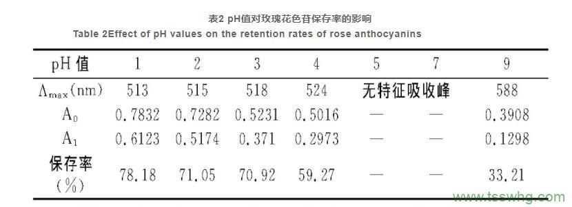 2.2 pH值對玫瑰花色苷穩(wěn)定性的影響