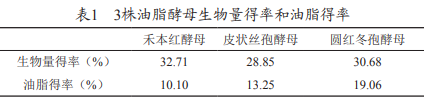 3株油脂酵母的產(chǎn)油對(duì)比見圖1。