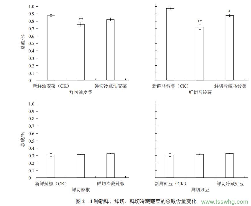 2.1鮮切和鮮切冷藏對4種蔬菜糖酸含量的影響