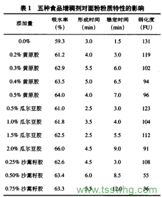 1、五種增稠劑對面粉粉質(zhì)特性的影響