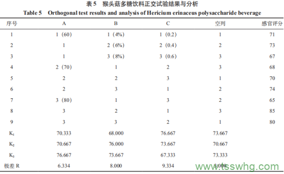 3、猴頭菇多糖飲料正交試驗結(jié)果與分析