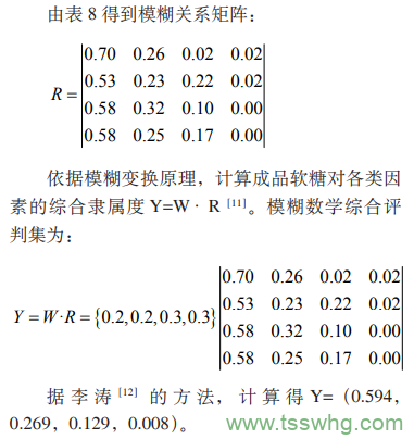 分析成品軟糖質(zhì)構(gòu)可知該產(chǎn)品在市場(chǎng)化之前需要優(yōu)化軟糖的硬度、黏性、咀嚼性、膠著性等特性,適合以類似果丹皮的卷曲、重疊方式加工包裝。以模糊數(shù)學(xué)綜合評(píng)判法對(duì)成品軟糖在青年人群中的受歡迎程度進(jìn)行評(píng)判,表明若產(chǎn)品投放市場(chǎng),青年人的評(píng)價(jià)為良。