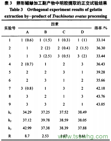 3、明膠提取的正交試驗結(jié)果