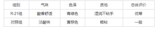 將發(fā)酵120d的青貯飼料按德國農(nóng)業(yè)協(xié)會(huì)青貯感官評分標(biāo)準(zhǔn)及等級評定方法,從色澤、氣味、質(zhì)地三方面進(jìn)行感官綜合評價(jià)。具體評價(jià)結(jié)果如表1所示,添加植物乳桿菌R-21的發(fā)酵飼料在氣味、色澤、質(zhì)地三方面的各個(gè)指標(biāo)均優(yōu)于對照組,與郝俊(2019)、張旭(2019)等研究結(jié)果一致,表明添加乳酸菌能顯著改善青貯發(fā)酵飼料的品質(zhì)。