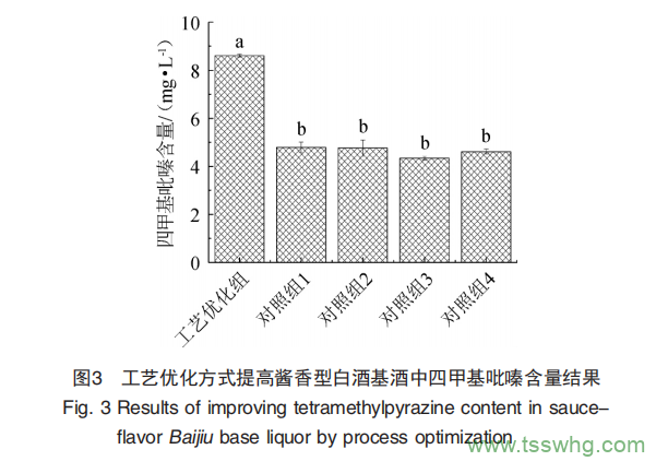 2.3 工藝優(yōu)化方式提高基酒中四甲基吡嗪含量的生產(chǎn)應(yīng)用結(jié)果