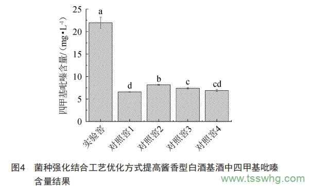 2.2 菌種強(qiáng)化方式提高基酒中四甲基吡嗪含量的生產(chǎn)應(yīng)用結(jié)果