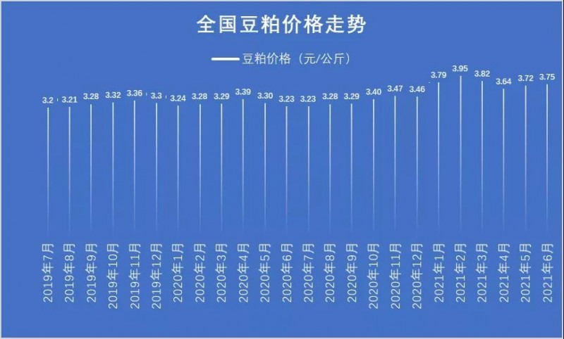 第二季度豆柏均價(jià)為3.7零元/KG,在其中,4月份全國(guó)各地豆柏均價(jià)為3.64元/KG,5月份 3.7兩元/KG,6月份3.75元/KG。4—6月份豆粕價(jià)格比2021年第一季度降低3.6%,和同期相比比增漲11.8%。