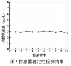 感應(yīng)器應(yīng)用性關(guān)鍵包含可靠性、可重復(fù)性、和敏感度。實(shí)際的檢測(cè)方法以下上述:穩(wěn)定性測(cè)試:隨便選擇一份山東濰坊市軍埠口鎮(zhèn)的一份水質(zhì)采樣,并將按容積均分成10等份,各自裝在10個(gè)試管嬰兒中,運(yùn)用文中制定的感應(yīng)器各自對(duì)這10個(gè)試驗(yàn)中的水質(zhì)樣版開展檢驗(yàn),對(duì)測(cè)量的信息做好紀(jì)錄,并測(cè)算差異指數(shù)(CV值),試驗(yàn)結(jié)果如下圖5所顯示: