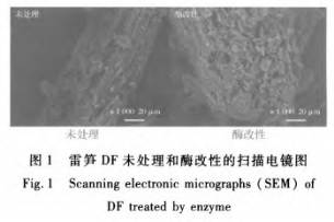 依據(jù)參考文獻,DF由井然有序結(jié)晶體區(qū)(70%)和非晶(30%)構(gòu)成。非晶區(qū)由不定形甲基纖維素,木質(zhì)素和木質(zhì)纖維素構(gòu)成。從圖3能夠 看得出,酶改性材料先后的X射線衍射圖型在形態(tài)上類似,表明出典型性的甲基纖維素I結(jié)晶構(gòu)形。沒有處理DF在掃描儀視角2θ為20.10o有顯著的結(jié)晶體透射峰,酶改性材料DF在掃描儀視角2θ為20.39o有顯著的結(jié)晶體透射峰,與此同時在34.55o處有一個弱透射峰。酶改性材料DF與沒有處理DF較為,結(jié)晶體峰的2θ值相仿,說明酶改性材料并沒有使晶體結(jié)構(gòu)發(fā)生改變。由Jade5.0手機軟件線性擬合后發(fā)覺,酶改性材料后DF的晶粒大小(30.78%)小于沒有處理DF(33.72%),CAO等舊引發(fā)覺甲基纖維素I的(002)晶向在酶溶解歷程中優(yōu)先選擇水解反應(yīng),而且木質(zhì)素一般與甲基纖維素相接,但其具備任意和不定形構(gòu)造,非常容易被半纖維素酶水解反應(yīng),因而在纖維素酶前期的水解反應(yīng)期內(nèi)晶粒大小應(yīng)當提升,殊不知結(jié)果與之相分歧。這有可能是由于伴隨著酶解時間的提升,較多的內(nèi)切圓葡聚糖酶促使結(jié)晶體區(qū)表層甲基纖維素的生物大分子破裂,而且在外面切葡聚糖酶和甲基纖維素二糖酶的協(xié)同效應(yīng)下徹底水解反應(yīng),造成 結(jié)晶體區(qū)減少;與此同時,結(jié)晶體區(qū)一些位置分子結(jié)構(gòu)鏈排序的混亂性由于外切葡聚糖酶的水解作用而提升,促使不定形區(qū)提升,兩層面的整體危害促使酶改性材料后DF的晶粒大小發(fā)生了減少。LE等K引報導了纖維素酶解決木槳化學纖維后甲基纖維素晶粒大小迅速減少。晶粒大小的減少說明DF的構(gòu)造更加疏松,這和WHC、SC和吸咐工作能力的改進結(jié)果一致。