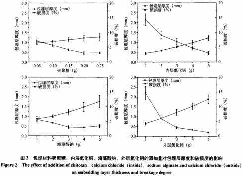 對包埋實際效果不錯的里層構造為殼聚糖和氯化鈣,表層構造為海藻酸鈉和氯化鈣的包埋層開展單要素科學研究,結果見圖2。