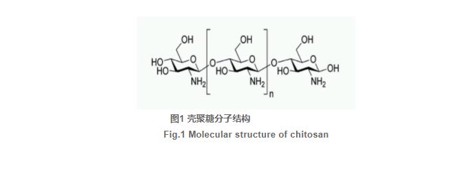 殼聚糖(Chitosan)有機(jī)化學(xué)名叫(1,4)-2-羥基-2-脫氨-β-D聚糖,是褐藻酸鈉脫乙?;奈镔|(zhì),分子式見圖1。一般覺得,脫乙酰度做到50%的褐藻酸鈉則可被稱作殼聚糖。因具備不錯(cuò)的抗菌性、涂膜性和抗氧化等特性,殼聚糖可做為優(yōu)良的食品保鮮原材料。