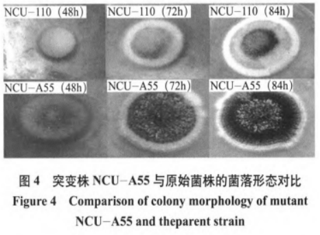 (1)基因突變株NCU—A55與初始菌種形狀觀查