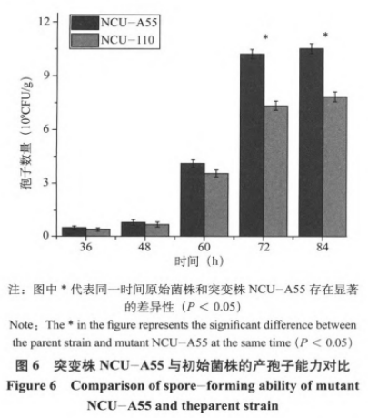 (2)基因突變株NCU—A55與初始菌種產(chǎn)胞子工作能力比照