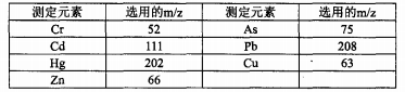 X-series2電感器 耦 合 等 正離子 體 質 譜 儀 (美 國 Thmermo Scientific公司 ) 試驗選用混和標明液對儀器設備標準開展提升。挑選標準見表1。