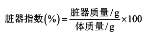 試驗操作過程中每一周按時稱重,紀錄小白鼠休重。將解剖學取下的腦、心血管、肝部、肝臟、腎臟功能用鹽水清洗去除表層殘渣,過濾紙吸走,秤重,并測算小白鼠內(nèi)臟器官指數(shù)值。