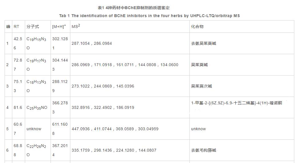 本科學(xué)研究創(chuàng)建了一種UPLC-DAD-BCD線上統(tǒng)計(jì)分析方法,用以迅速挑選吳茱萸、鉤藤、玄參和山豆根(苗)4種藥材中的BChE緩聚劑,發(fā)覺(jué)12個(gè)成份具備BChE抑止活力,根據(jù)UHPLC-LTQ/Orbitrap方式評(píng)定出8種活力成份,如:去氫吳茱萸堿、吳茱萸堿、吳茱萸次堿、1-羥基-2–4(1H)-喹諾酮、去氫毛鉤藤堿、毛鉤藤堿、苦參堿和氧化苦參堿。研究表明,創(chuàng)建的儀器設(shè)備聯(lián)用系統(tǒng)軟件平穩(wěn)、線上統(tǒng)計(jì)分析方法靈巧,可以普遍用以中藥材繁雜機(jī)質(zhì)中微生物效用成份的迅速篩選。