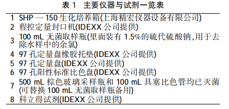 6 塑造 24h 后從恒溫箱中取下與 97 孔呈陽性規(guī)范色度盤開展較為淡黃色孔色調(diào)比 97 孔呈陽性 規(guī)范色度盤深的說明為陽性反應(yīng)依據(jù) 97 孔定量分析盤里的呈陽性孔眼 對比 IDEXX 企業(yè)供應(yīng)的 MPN表報出結(jié)果。