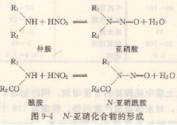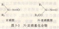 N-亞硝基化學(xué)物質(zhì)是一大類有機(jī)物,依據(jù)其化學(xué)結(jié)構(gòu),可分成兩大類:一類為亞硝酸,另一類為N-亞硝氟苯?;旧蠘?gòu)造如圖所示9—3所顯示。