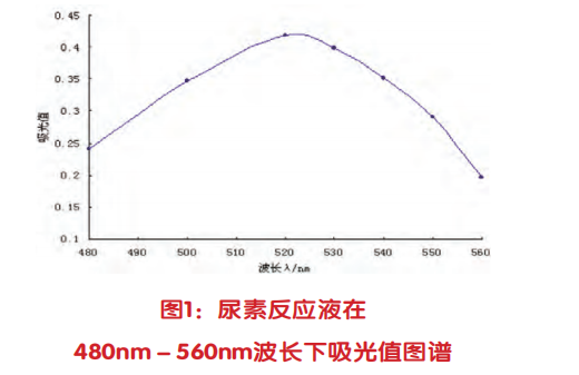 物色調(diào)的深度與尿素溶液成分正相關,在光波長525nm上有較大吸取峰。
