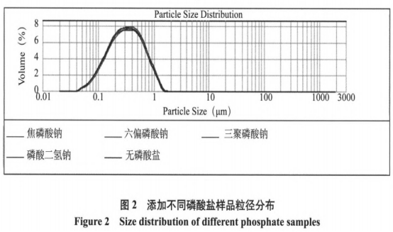 不一樣聚磷酸鹽對試品粒度尺寸的干擾如圖2所顯示。