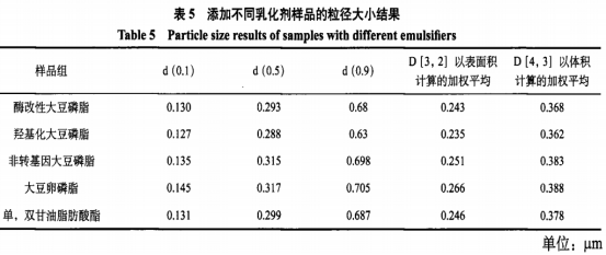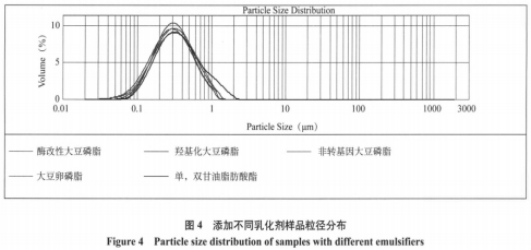 加上不一樣破乳劑的牛奶咖啡飲品的粒度剖析效果如圖4所顯示。