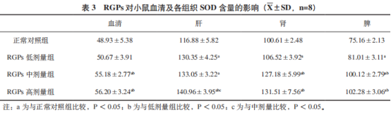 2、RGPs對小白鼠血清蛋白及各機構(gòu)SOD魅力的危害