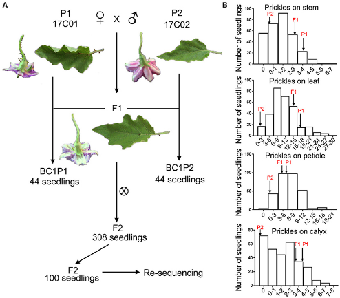 近日,蔬菜水果研究室在國(guó)際性生物學(xué)刊物Frontiers in Plant Science(IF=5.75)上刊登了名為“Identification of Quantitative Trait Loci Controlling the Development of Prickles in Eggplant forbid Genome Re-sequencing Analysis”的研究分析畢業(yè)論文。該探討對(duì)四季豆葉柄、葉子、葉莖和花萼上的刺開展了QTL精準(zhǔn)定位,對(duì)培養(yǎng)主莖沒(méi)刺的四季豆種類給予了理論基礎(chǔ)。