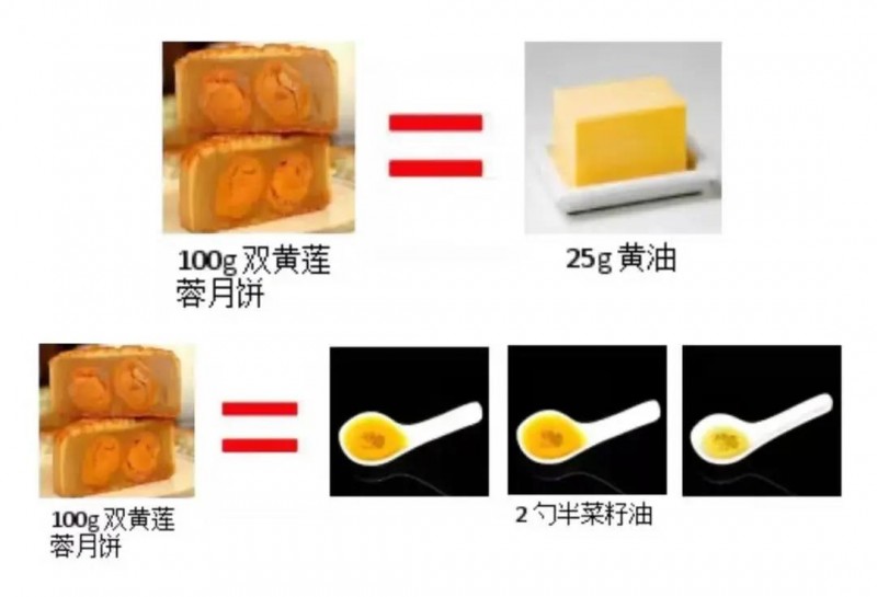 一個(gè)185g雙黃蓮蓉月餅的脂肪油成分為43g,等同于4個(gè)半白釉勺的植物油脂量,且在其中碳水化合物成分約600mg(每天每人碳水化合物攝取量一般不超過(guò)300mg)。