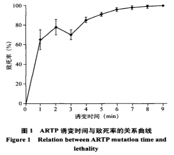 高紀(jì)念等研究表明,ARTP誘變在死亡率貼近90%的標(biāo)準(zhǔn)下,可獲得較高的正突變率,本分析在前者探討的根基上,挑選6min為最好誘變時間,這時死亡率為91.05%。