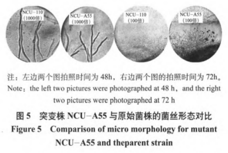 (1)基因突變株NCU—A55與初始菌種形狀觀查