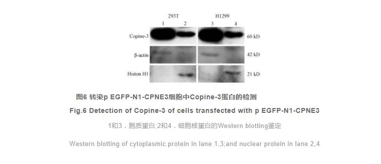 大家從HBE體細胞中復(fù)制獲得編號人Copine-3蛋白質(zhì)的CPNE3遺傳基因,搭建p EGFP-N1-CPNE3真核表達載體,各自轉(zhuǎn)染人293T和H1299體細胞,激光器掃描儀共焦顯微鏡、免疫印跡法檢驗體細胞試品,免疫力機構(gòu)化學(xué)檢測肺癌臨床醫(yī)學(xué)試品,結(jié)果顯示,Copine-3蛋白質(zhì)定坐落于細胞核和細胞質(zhì)。大家的試驗為進一步科學(xué)研究該蛋白質(zhì)在腫瘤干細胞內(nèi)的作用,以及胞內(nèi)精準定位與細胞學(xué)作用相互之間的關(guān)聯(lián)確立了基本。